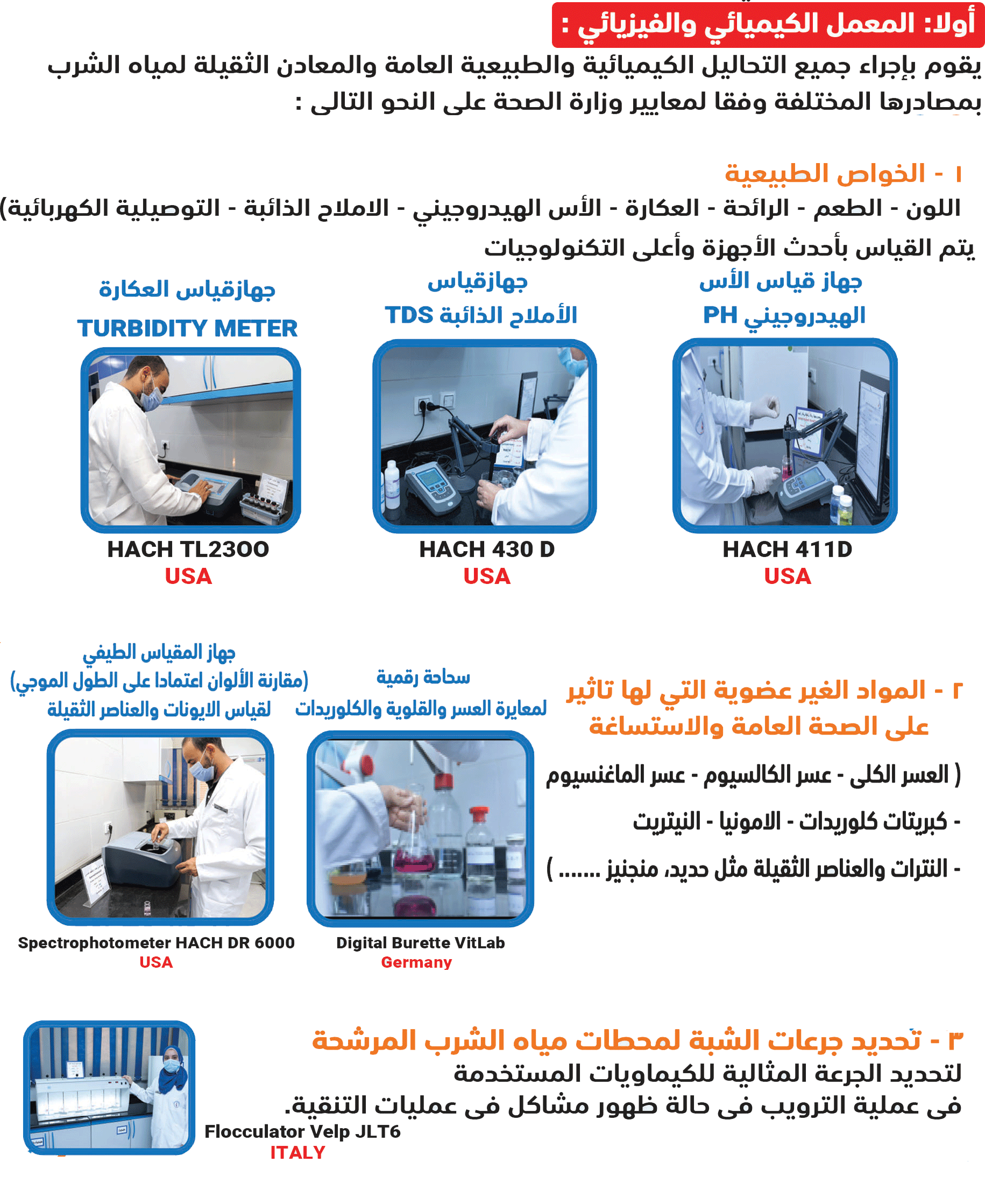 .لعينات مياه الشرب والصرف الصحي والصناعي باستخدام أحدث الأجهزة وأعلى التكنولوجيات العالمية