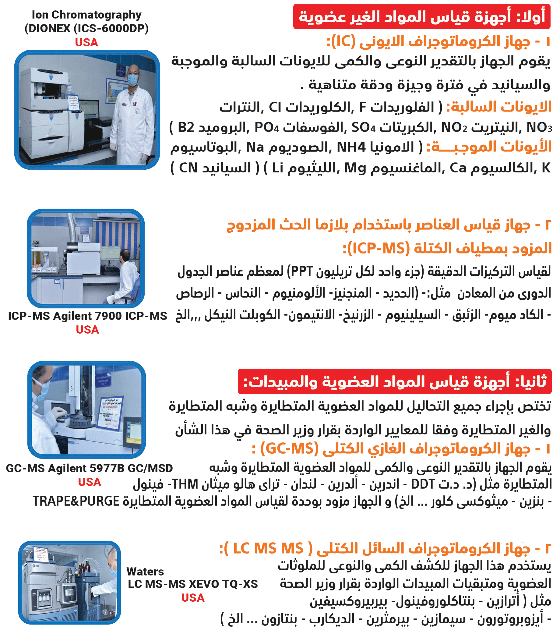 يقوم المعمل بقياس المواد الغير العضوية والعضوية بتركيزات دقيقة جزء واحد لكل تريليون